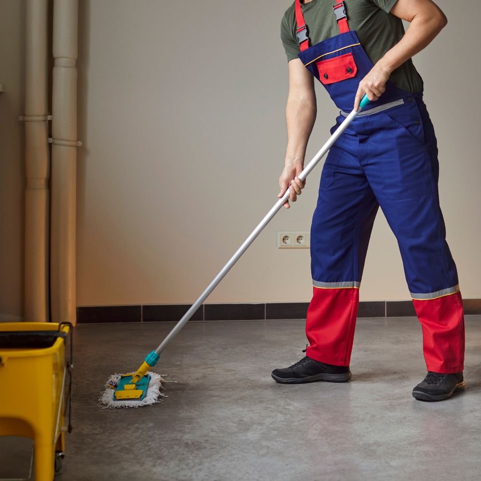 Professional floor care services including vacuuming, mopping, carpet cleaning, and hard floor maintenance to keep your office floors looking clean and well-maintained.